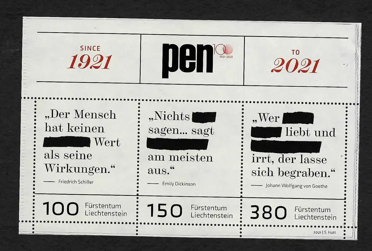 Liechtenstein 2021: 100 Jahre PEN International, Block zum rubbeln, **