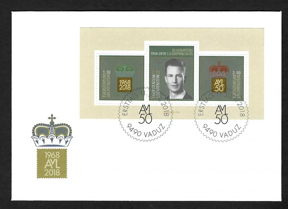 Liechtenstein: 50. Geburtstag von Erprinz Alois von und zu Liechtenstein, FDC