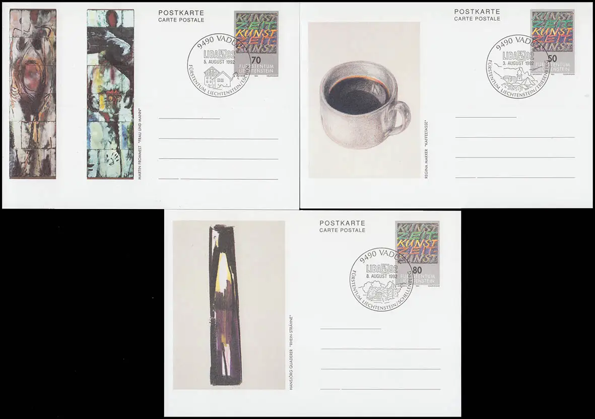 Liechtenstein Postkarte P 91-97 Zeitkunst-Motiv - Set mit SSt LIBA August 1992