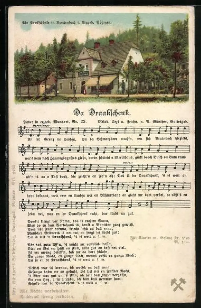 Lied-AK Anton Günther Nr. 25: Breitenbach, Gasthaus Dreckschänke, Liedtext Da Draakschänk