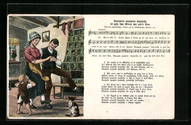 Lied-AK Hilmar Mückenberger: Rumpelte pumpelte hoppsassa, Is geht scha Miene heb när`s Baa