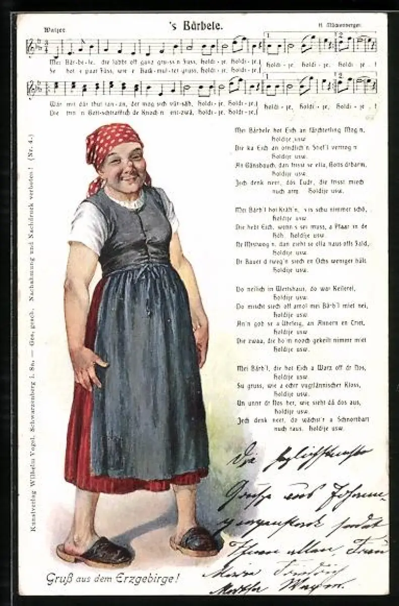 Lied-AK Hilmar Mückenberger: 's Bärbele, Mei Bärbele die labbt off ganz grussn Fuss...