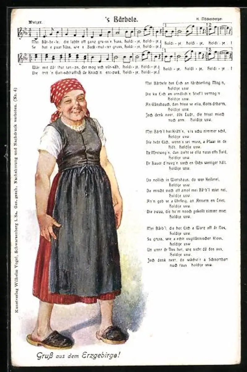 Lied-AK Hilmar Mückenberger: 's Bärbele, Text, Frau mit Kopftuch