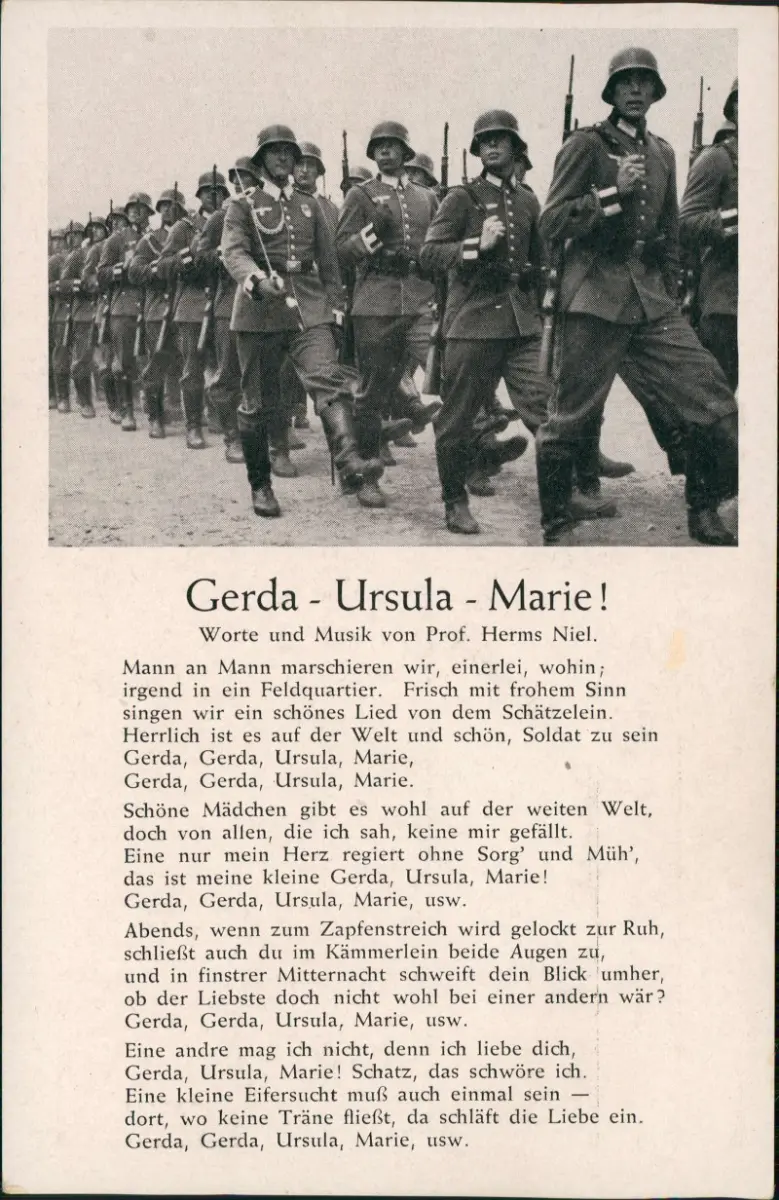Name: Liedkarte Militär WK2 Gerda Ursula Marie marschierende Soldaten