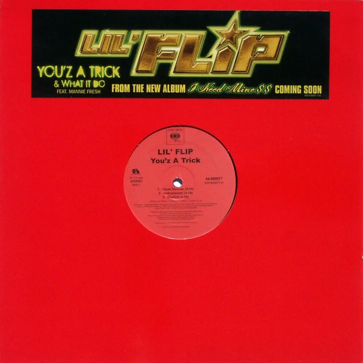 12" Maxi Lil' Flip - You'z A Trick, neutrales Cover mit Info-Aufkleber, Zustand Platte VG+ Hülle VG+; Made in United States 2006 Columbia 44-680977, Tracks Clean Vers. 4:08, Instr. 4:08, Explicit 4:08, Lil' Flip feat. Mannie Fresh - What It Do [Clean Vers.] 4:02, What It Do [Instr. Vers.] 4:02, Lil' Flip feat. Mannie Fresh - What It Do [Explicit] 4:02