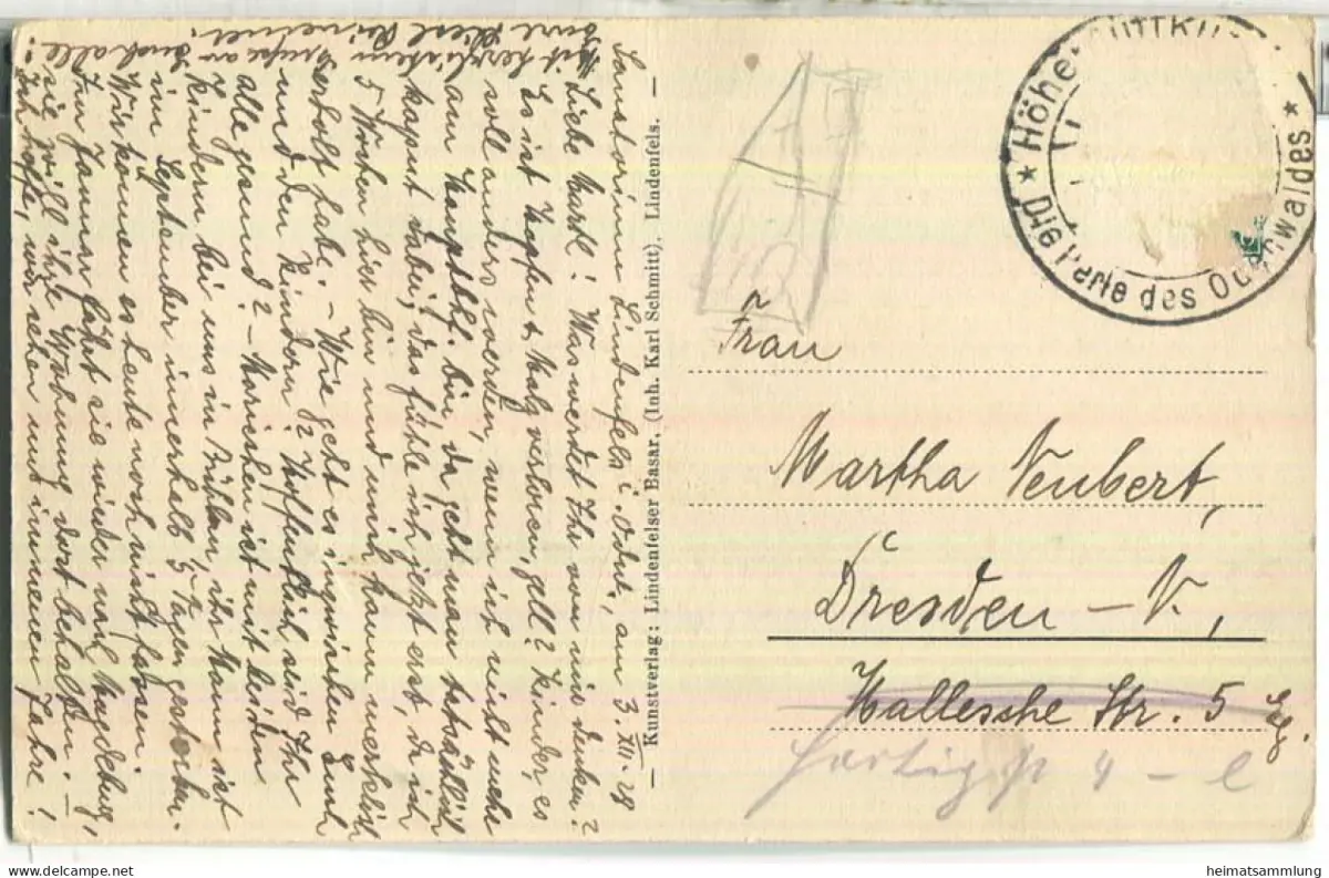Lindenfels im Odenwald - Jugendherberge - Verlag Lindenfelser Basar Karl Schmitt - Briefmarke entfernt (E87748) gel. 1928