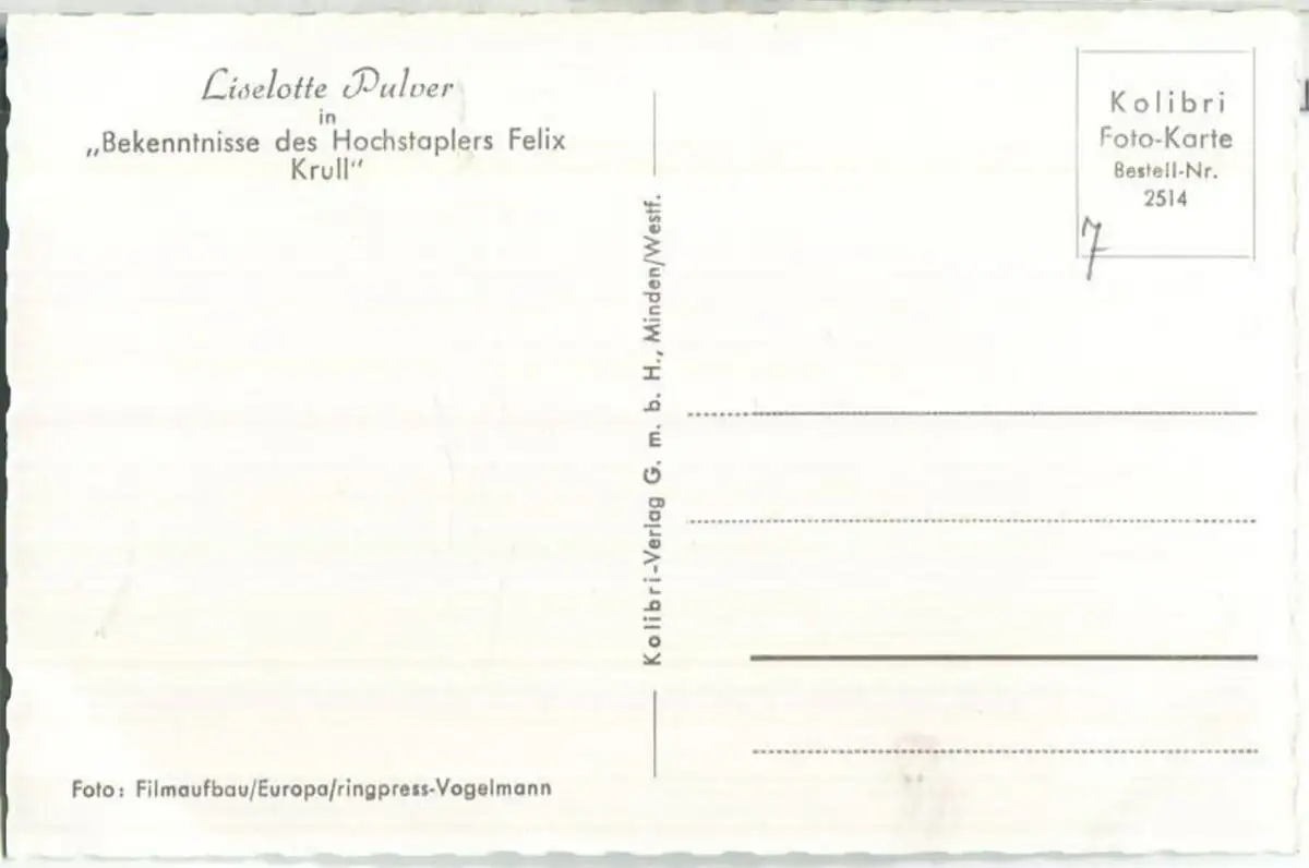 Liselotte Pulver - Verlag Kolibri Minden Nr. 2514