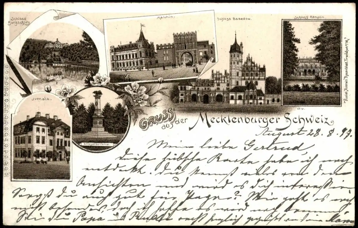 Litho AK Basedow Remplin Burgschlitz Ivenack Mecklenburger Schweiz 1897