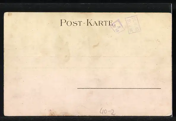 Personenbezogene Daten auf der Rückseite der Karte wurden durch blauen Textmarker unkenntlich gemacht. Die blauen Stellen sind auf die Vorderseite durchgeweicht und wirken sich negativ auf das Postkartenfoto aus
