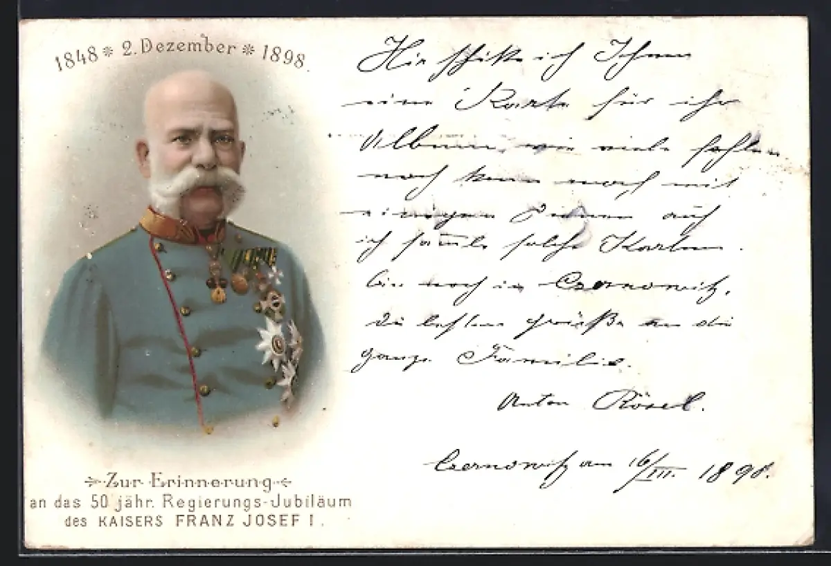 Lithographie 50. jähr. Regierungs-Jubiläum des Kaisers Franz Josef I. von Österreich 1898