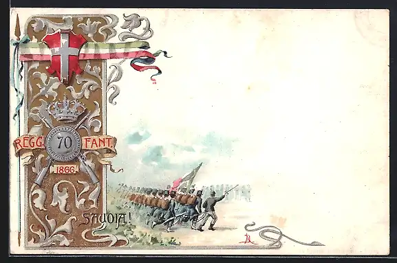 Lithographie 70. Reggimento Fanteria 1866, Savoia!