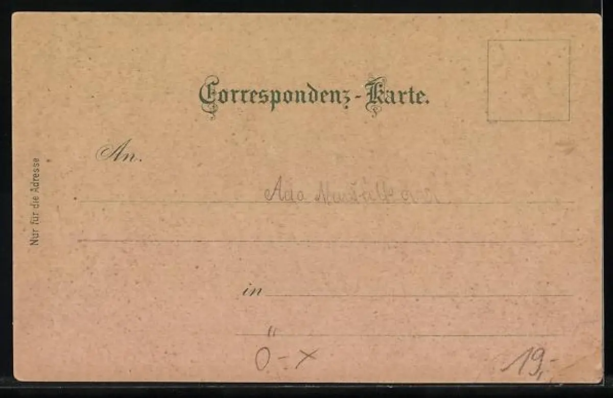 Personenbezogene Daten auf der Rückseite der Karte wurden durch blauen Textmarker unkenntlich gemacht. Die blauen Stellen sind auf die Vorderseite durchgeweicht und wirken sich negativ auf das Postkartenfoto aus