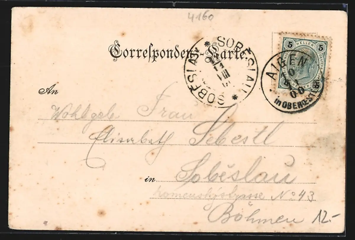 gelaufen 1900, Eckknick rechts oben, guter Zustand