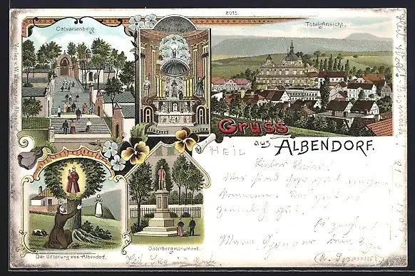 Lithographie Albendorf, Calvarienberg, Osterbergmonument, Hochaltar in der Gnadenkapelle
