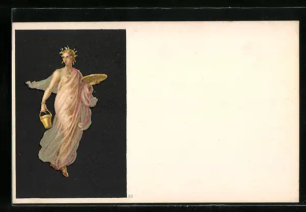 Lithographie Allegorische Frauenfigur im durchscheinenden Gewand mit Eimer und Tablett, Jugendstil