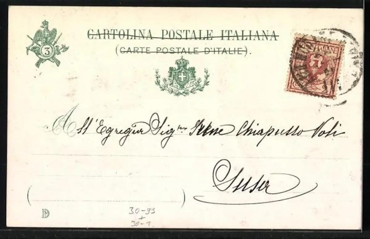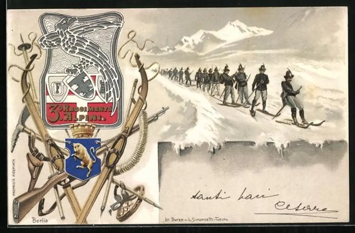 Lithographie Alpini, 30. Regiment auf Skiern in den Bergen, Wappen