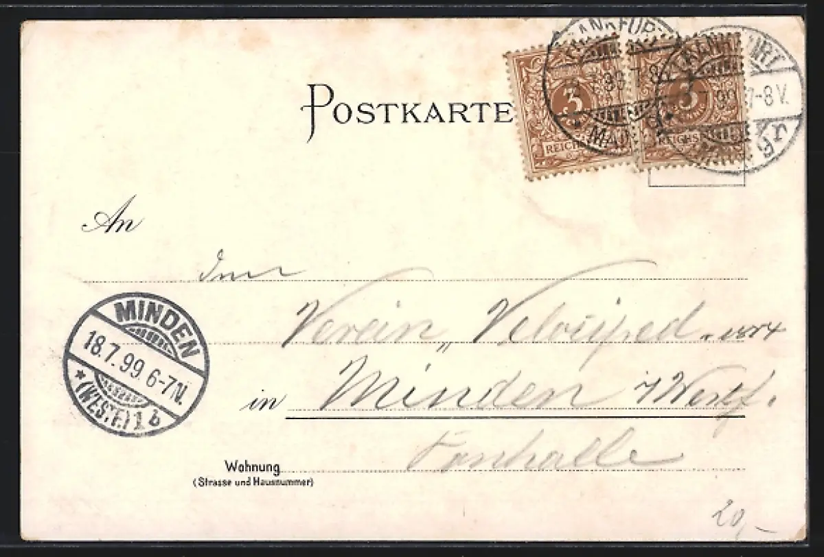 gelaufen 1899, Abriebspur oben rechts, guter Zustand