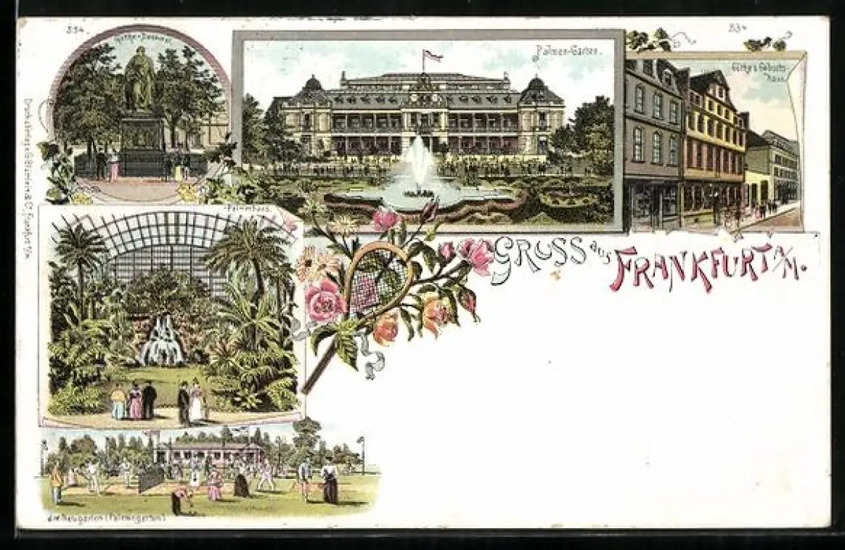 Lithographie Alt-Frankfurt, Goethe`s Geburtshaus, Palmen-Garten