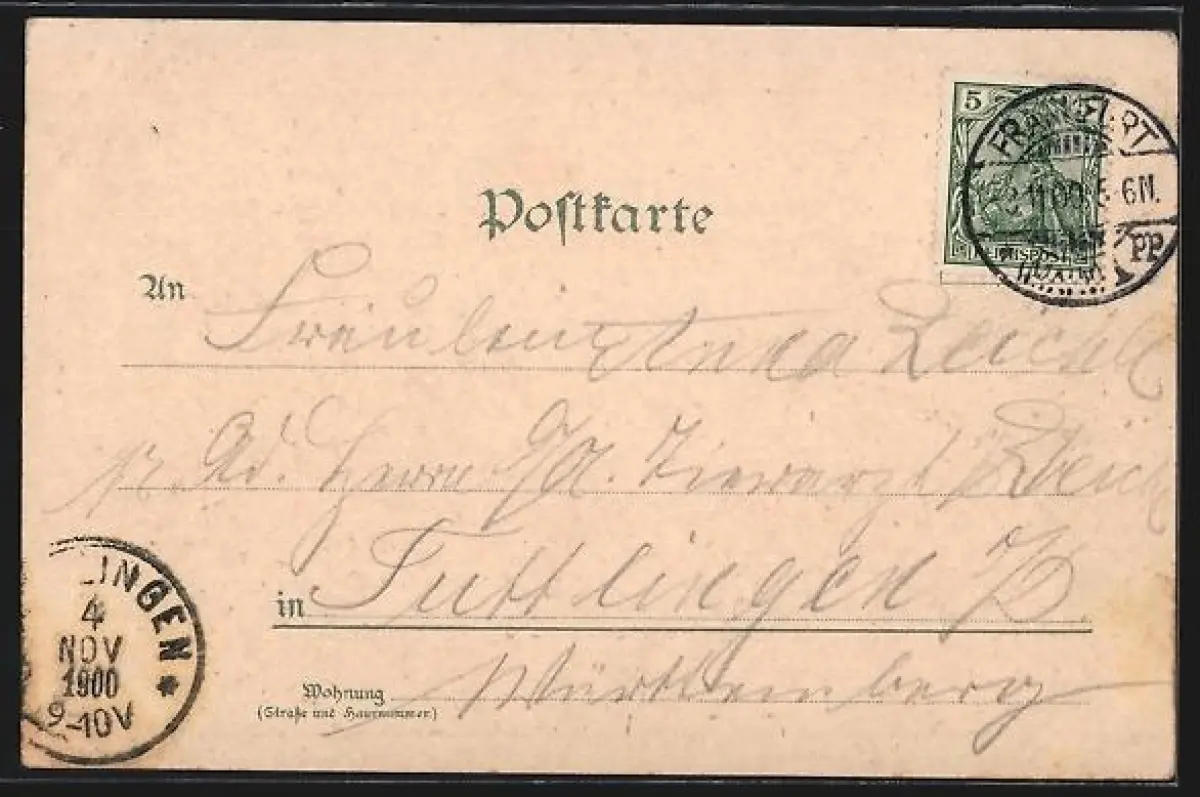 gelaufen 1900, Eckknick oben li., guter Zustand