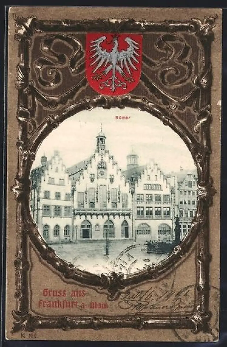 Lithographie Alt-Frankfurt, Römer, Wappen, Passepartout