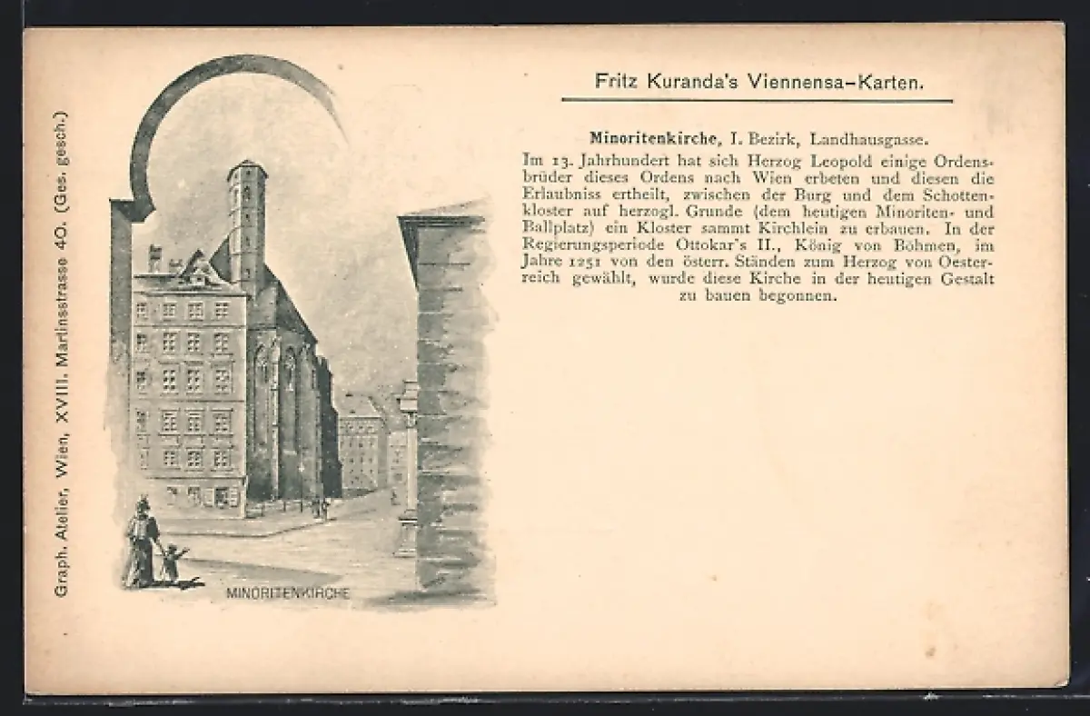 Lithographie Alt-Wien, Landhausgasse mit Minoritenkirche