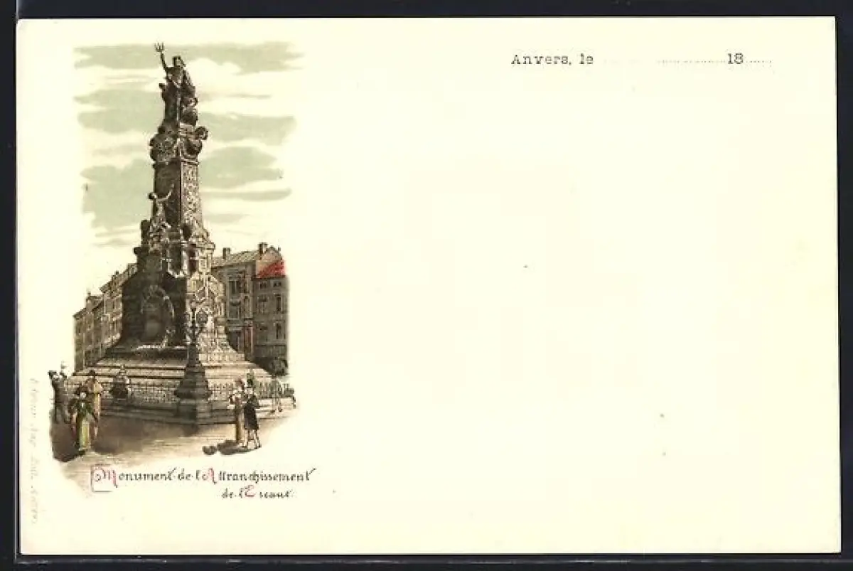 Lithographie Anvers, Monument de l`Attranchisssement de l`Escaux