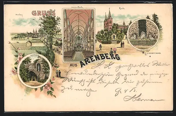 Lithographie Arenberg, Kirche, Innenansicht, Schlafende Jünger