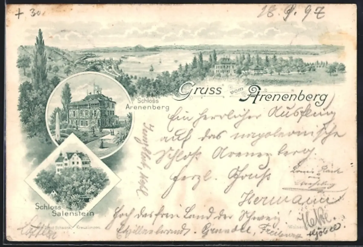 Lithographie Arenenberg, Schloss Arenenberg, Schloss Salenstein, Panorama