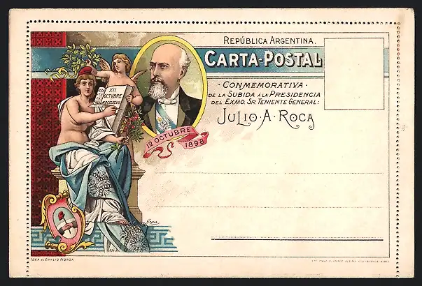 Lithographie Argentinien, Conmemorativa, de la Subida a la Presidencia del Exmo. Sr. Teniente Genreal Julio Roca