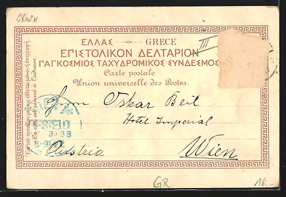 gelaufen 1898, Briefmarke entfernt, rückseitig Oberflächenschaden, guter Zustand