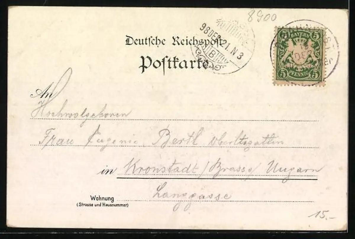 gelaufen 1898, kleiner Eckschaden unten rechts, guter Zustand