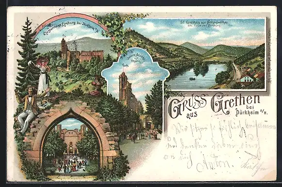 Lithographie Bad Dürkheim, Klosterruine Limburg, Durchblick nach der Krypta