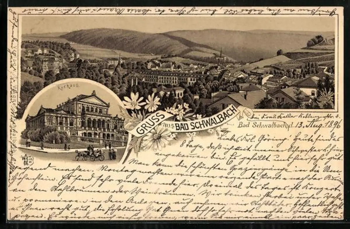Lithographie Bad Schwalbach, Kurhaus, Teilansicht