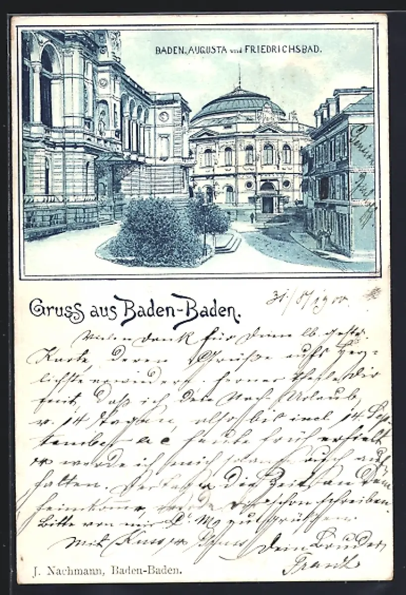 Lithographie Baden-Baden, Augusta- und Friedrichsbad