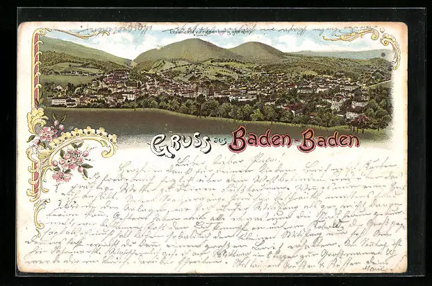 Lithographie Baden-Baden, Totalansicht v. Friesenberg gesehen