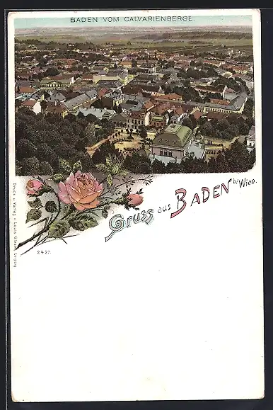 Lithographie Baden bei Wien, Ortsansicht vom Calvarienberge aus