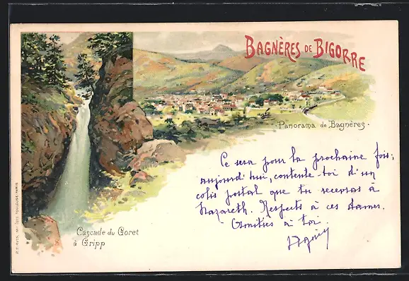 Lithographie Bagnères de Bigorre, Cascade du Goret à Gripp