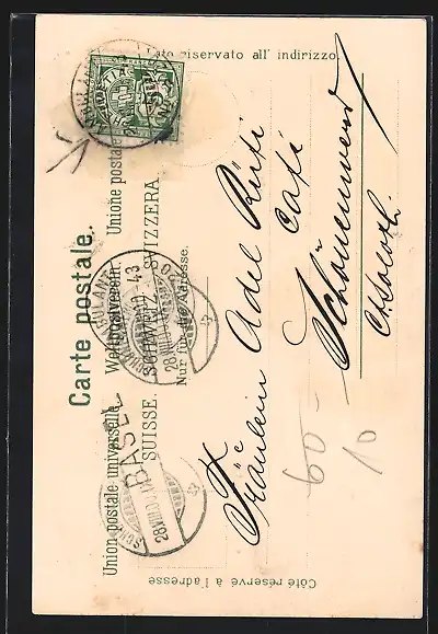 gelaufen 1900, rückseitig Klebe- und Papierreste, guter Zustand