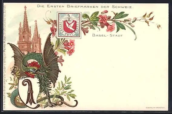 Lithographie Basel, Die ersten Briefmarken der Schweiz, Stadt-Post Basel, Stadtwappen