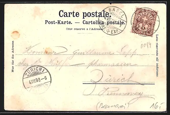 gelaufen 1898, Eckknick unten li., guter Zustand