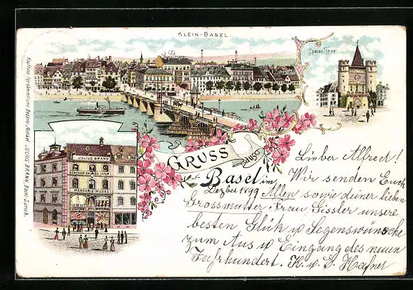Lithographie Basel, Klein-Basel, Spalen-Thor, Geschäftshaus Julius Brann