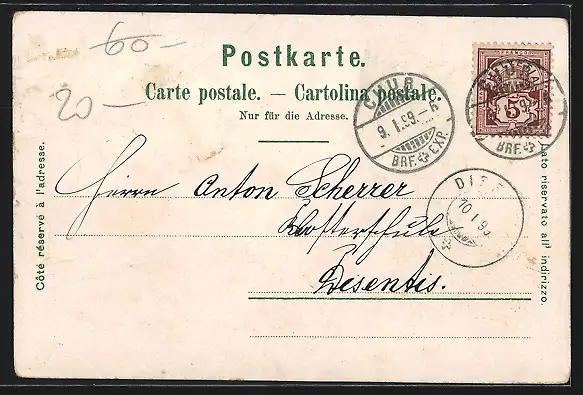 gelaufen 1899, Bugspuren oben re. und re. mittig, guter Zustand