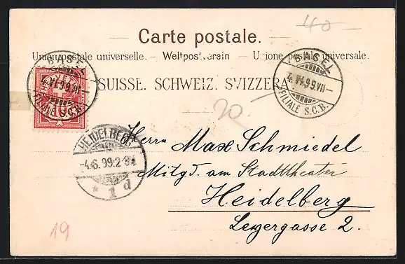 gelaufen 1899, Bugspur und Einriss re. oben, Eckknick li. oben, guter Zustand