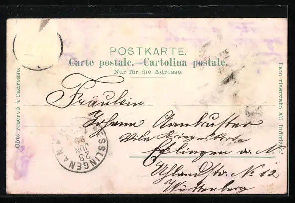 gelaufen 1899, Briefmarke entfernt, guter Zustand
