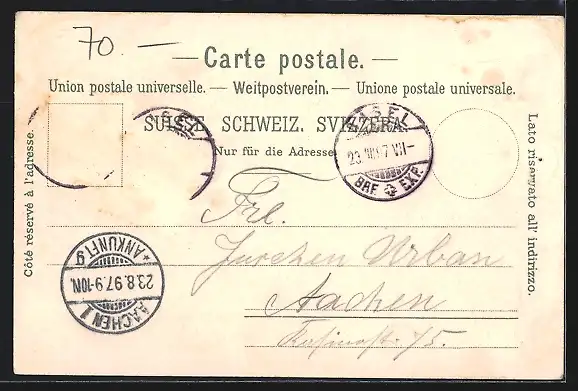 gelaufen 1897, Eckknicke oben, guter Zustand