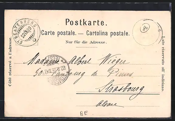 gelaufen 1899, Briefmarke entfernt, guter Zustand