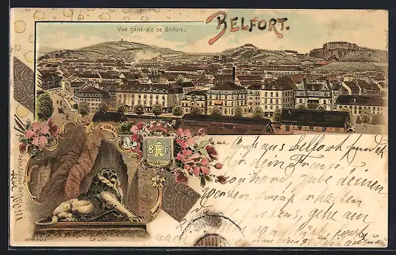 Lithographie Belfort, vue générale, Le Lion