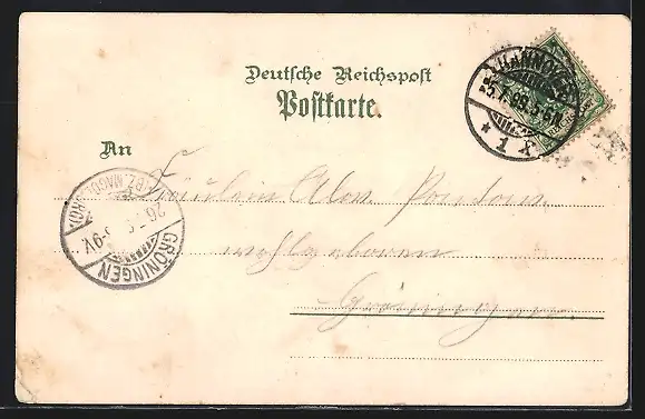 gelaufen 1899, Eckknicke unten, Ecken bestoßen, guter Zustand