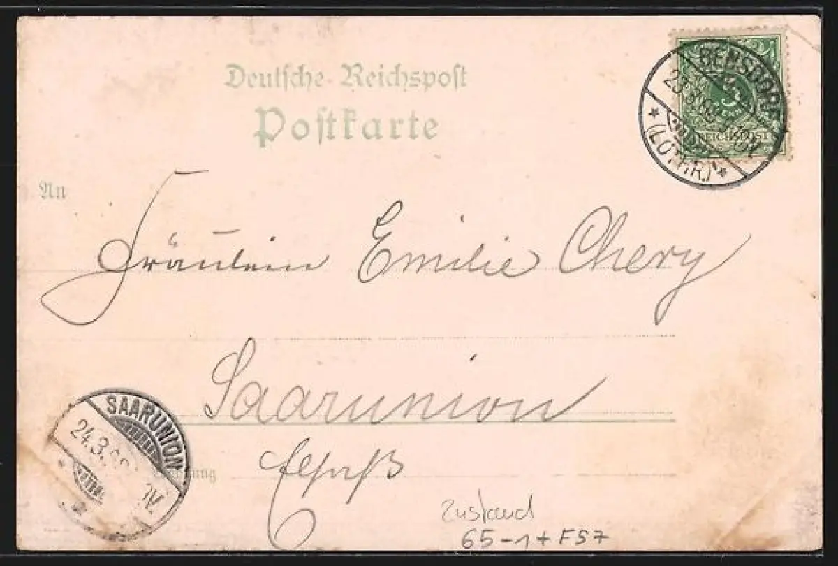 gelaufen 1908, rückseitig Oberflächenschaden, Stempelspur, Eckknick links oben, guter Zustand