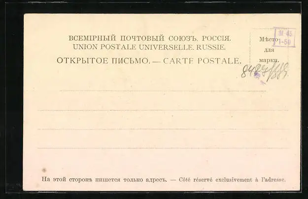 Personenbezogene Daten auf der Rückseite der Karte wurden durch blauen Textmarker unkenntlich gemacht. Die blauen Stellen sind auf die Vorderseite durchgeweicht und wirken sich negativ auf das Postkartenfoto aus